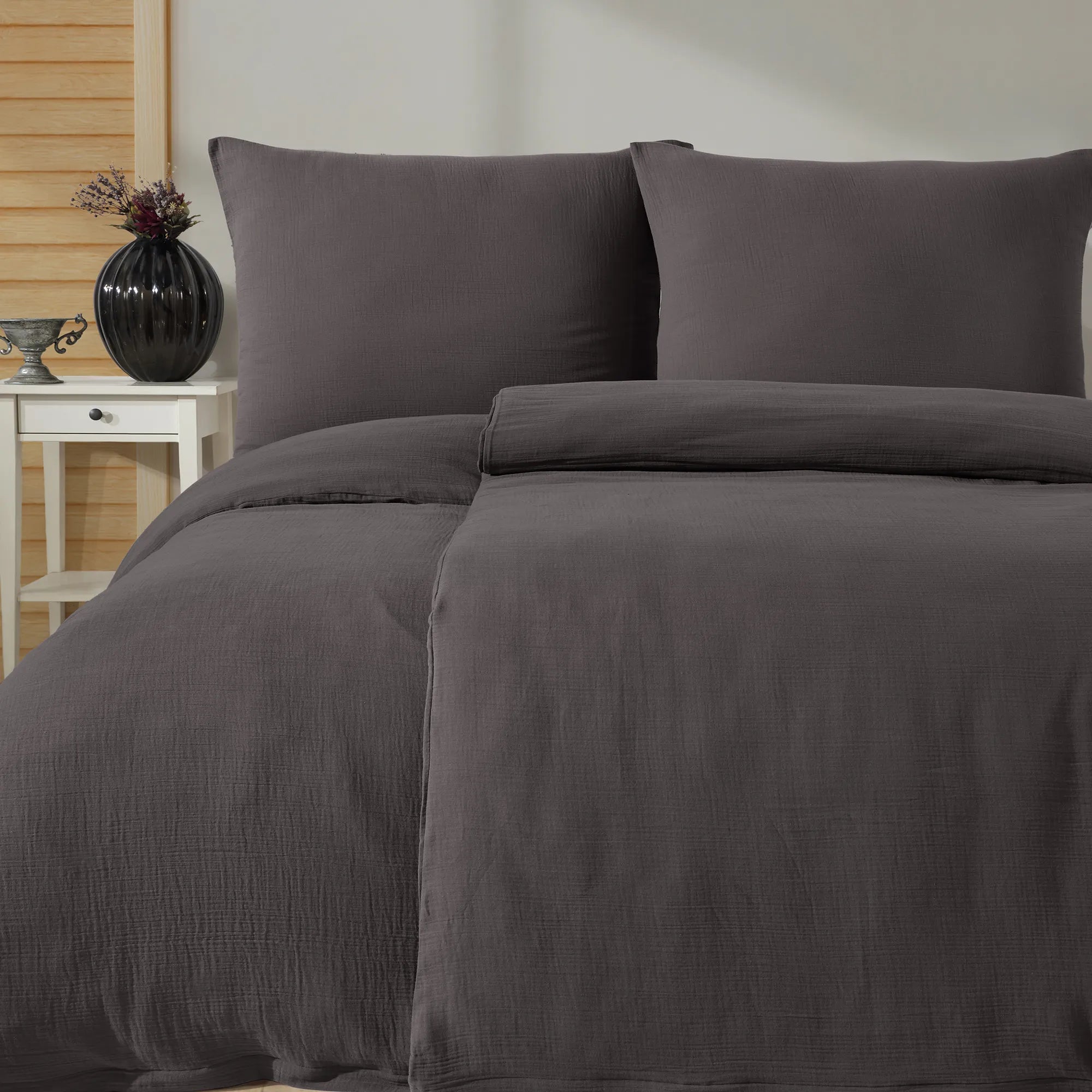 100% Baumwolle Unifabre Musselin Bettwäsche - Anthrasit