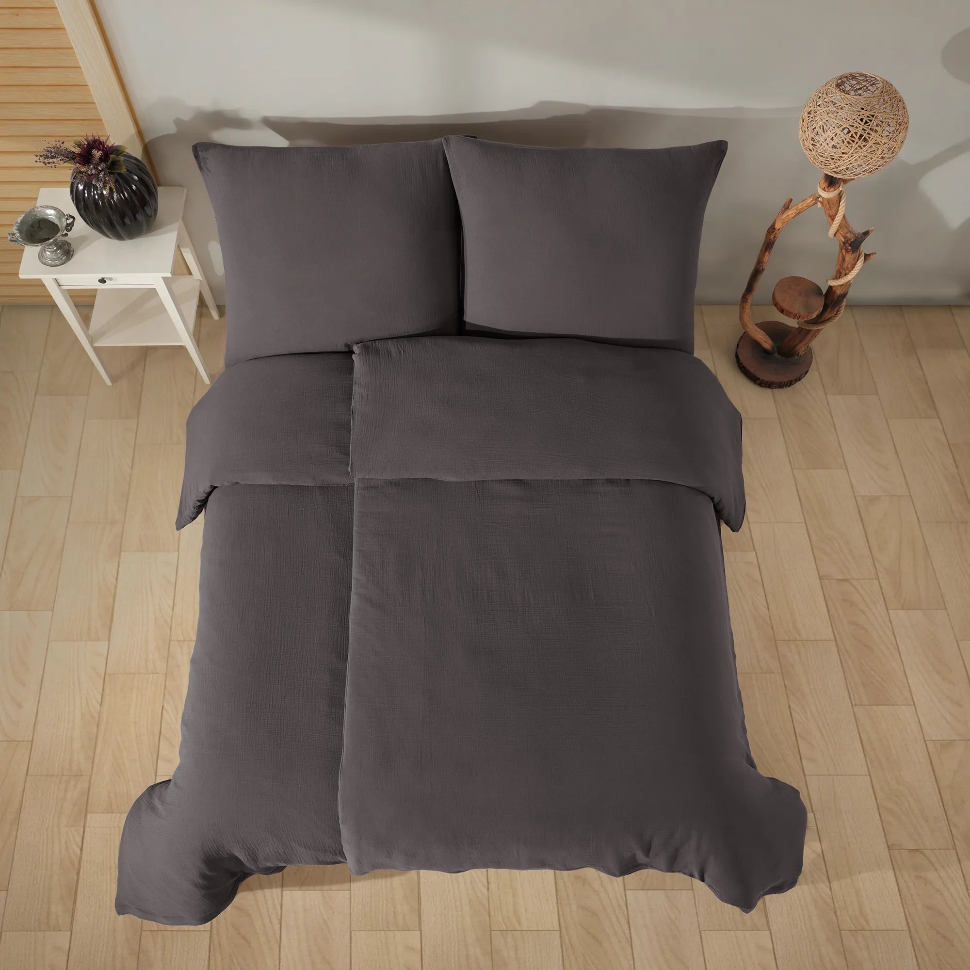- 100% Baumwolle Unifabre Musselin Bettwäsche - Anthrasit